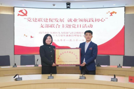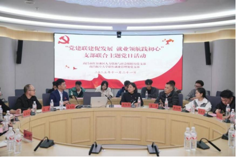 为加强党建引领中心工作、深化政校企合作促进大学生就业,2025年11月21日,南昌航空大学招就处党支部与南昌市红谷滩区人社局党支部开展联建工作,并举办“党建联建促发展 就业领航践初心”联合主题党日活动。红谷滩区人社局局长、党支部书记刘红霞出席并授牌,双方党支部近30名党员参与,南昌航空大学招就处党支部书记陈绍珍主持活动。